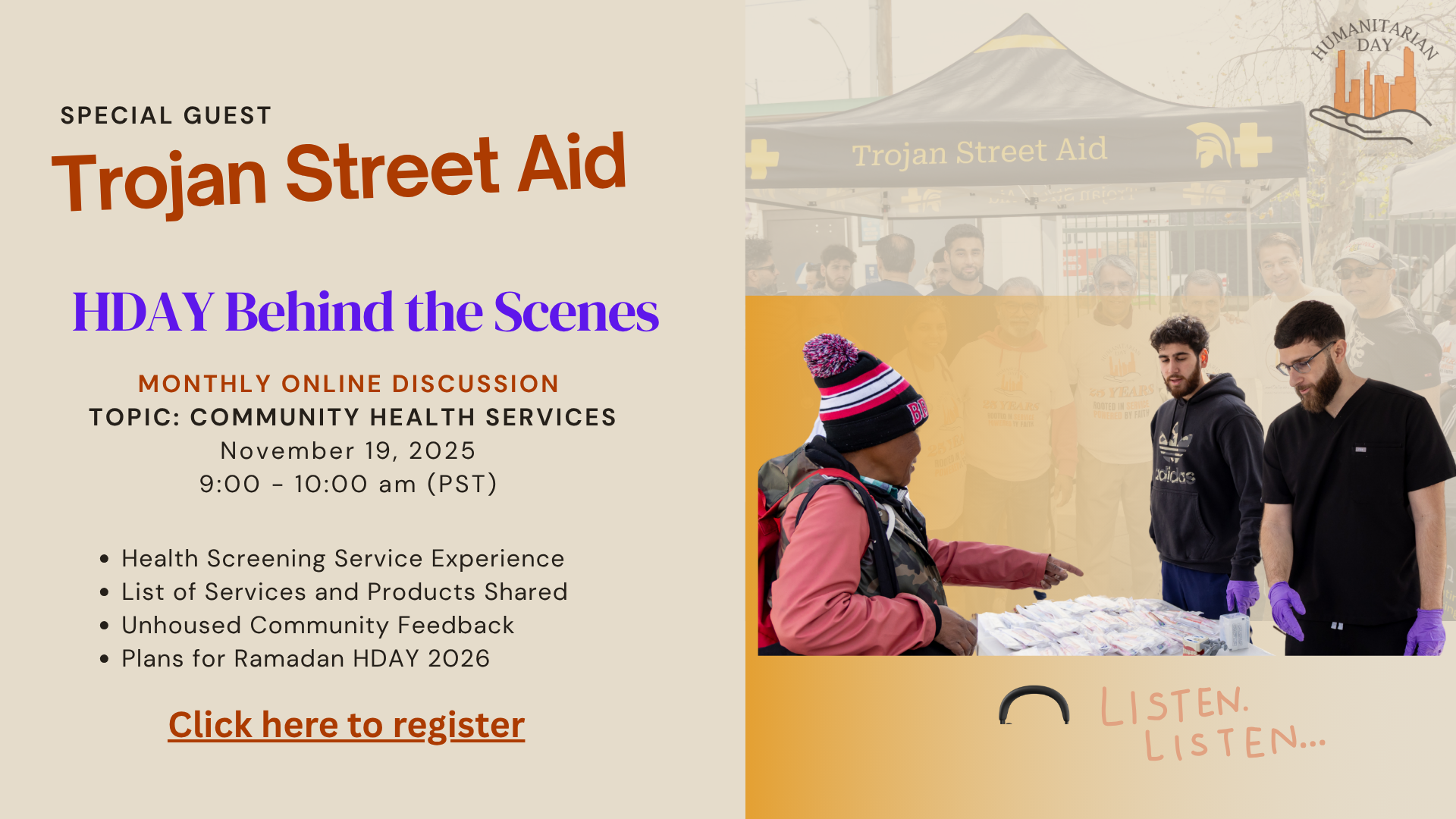 After the event, the team gathered to debrief, with only one shared wish:“We all wished we could have done more.” That statement represents the tag line Rooted in Service Powered by Faith. When service fuels the heart, it sustains itself, which explains how Humanitarian Day is now approaching its 26th year. The Trojan Street Aid team left the event energized eager to grow, to refine, and to return.