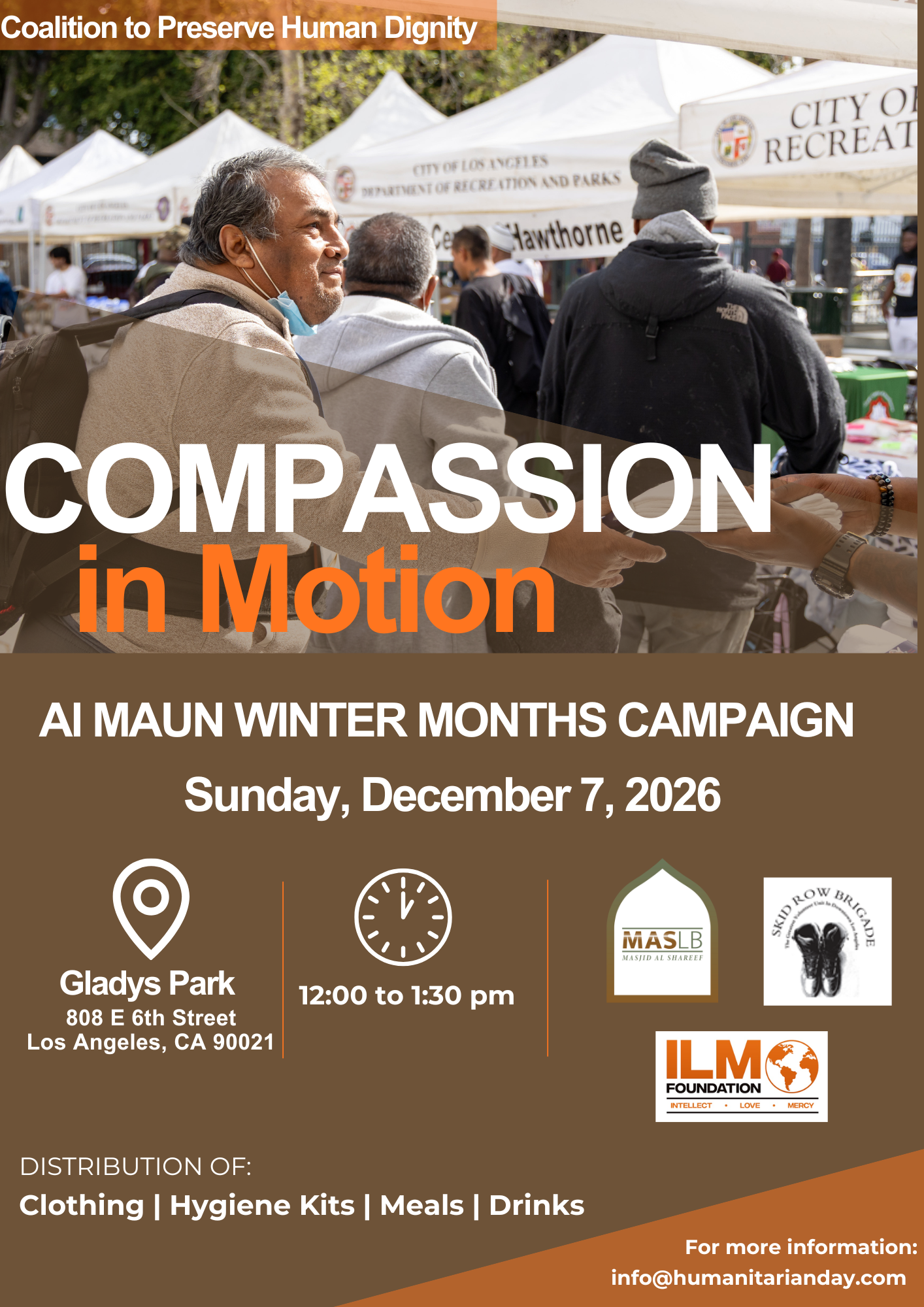 Our Annual Humanitarian Day Ramadan Event will be held on, Sunday, March 1, 2026 at Gladys Park on 6th and Gladys Street from 10am to 2 pm.