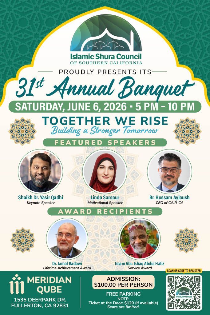 Today, we honor one such servant of God, Imam Abu Ishaq Abdul Hafiz, recipient of the 2026 Community Service Award from the Southern California Shura Council. This is a recognition of a lifetime spent walking into the hardest spaces with faith, dignity, and unwavering compassion, answering the call in spaces few want to go.