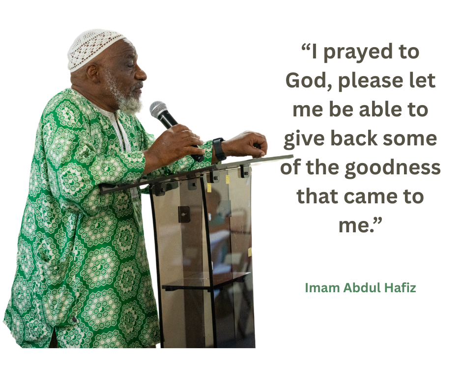 For over 22 years as a Federal Bureau of Prisons Chaplain, and more than 15 years volunteering across county, state, and federal correctional facilities, Imam Abdul Hafiz has committed himself to the mission using Islam to re-build the character of men, many wrote off as expendable.